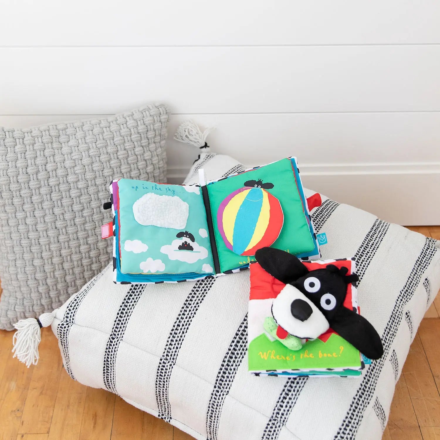 The lovable black and white puppy searches high and low for his bone in this irresistible story that's loaded with fun activities. This clever and imaginative soft activity book has won the Parent's Guide Children's Media Award. Enjoy flipping through the Where's the Bone baby book with your little one.
