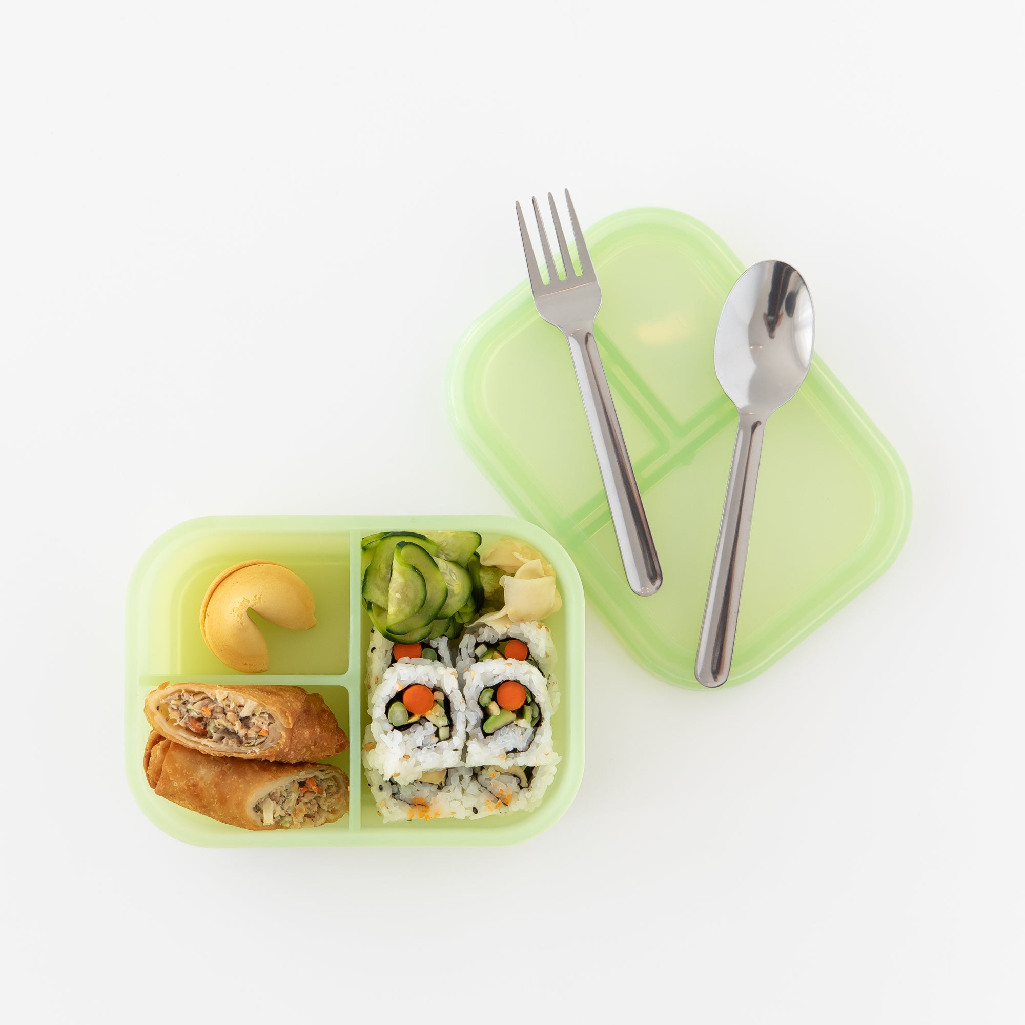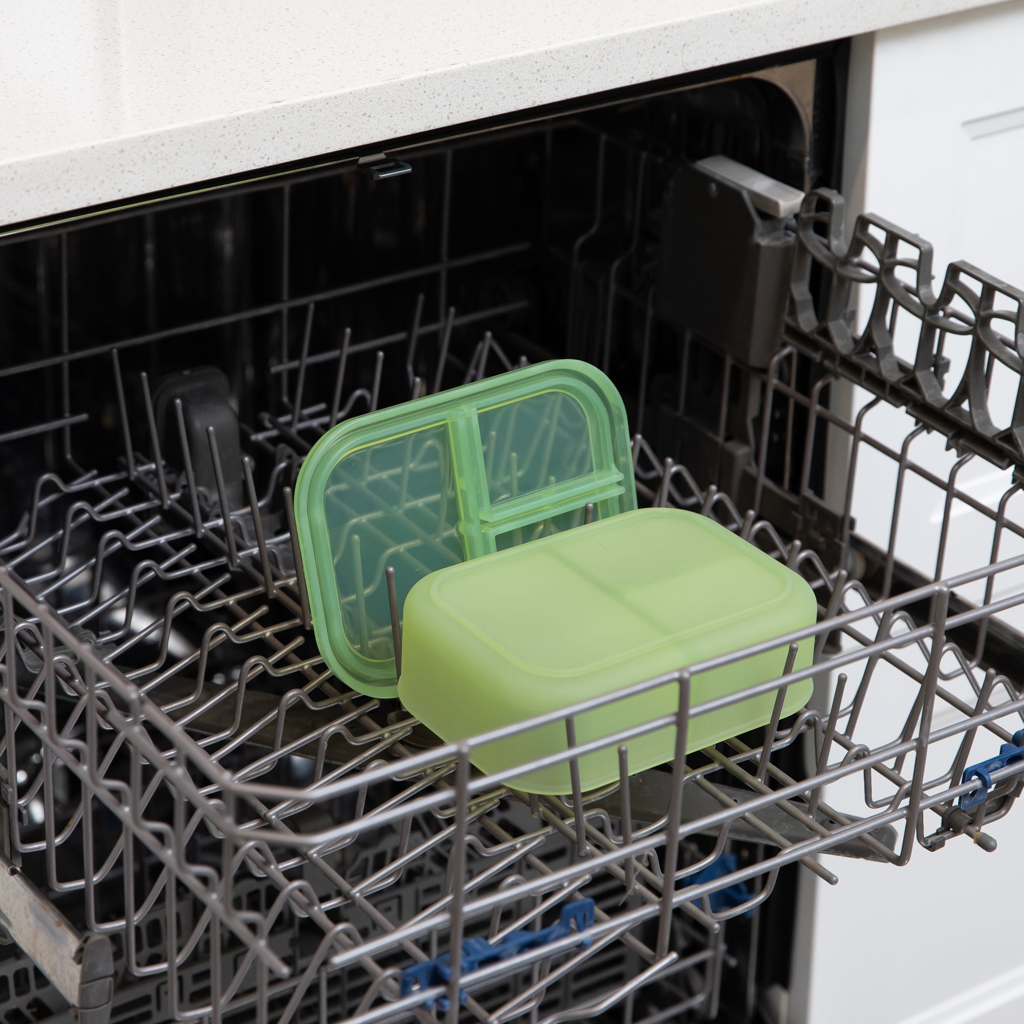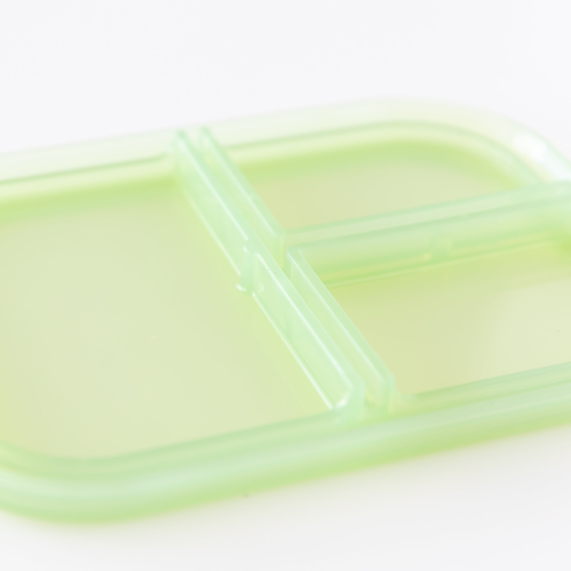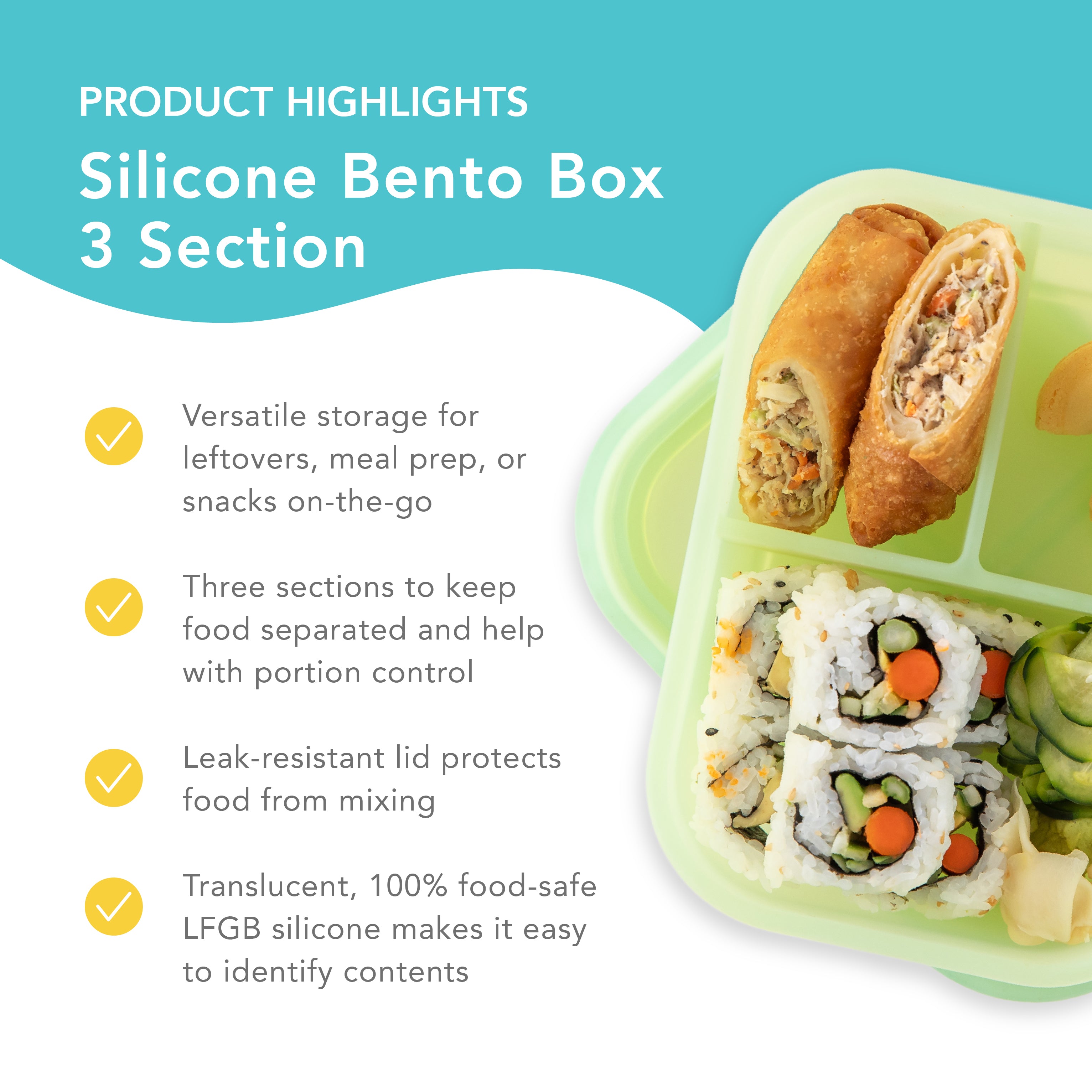 One box, endless possibilities! Bumkins Green Jelly Silicone Bento Box—a delightful lunchtime solution for both kids and adults! This versatile container is designed for leftovers, meal prep, or snacks on-the-go. With three deep-walled sections, a leak-resistant lid, and non-skid base, it ensures foods stay separate, portion-controlled, and secure. The colorful translucent silicone makes content identification a breeze, while the compact size fits most standard lunch boxes. The wet or dry-erase marker-friendly surface allows for easy labeling or dating.
