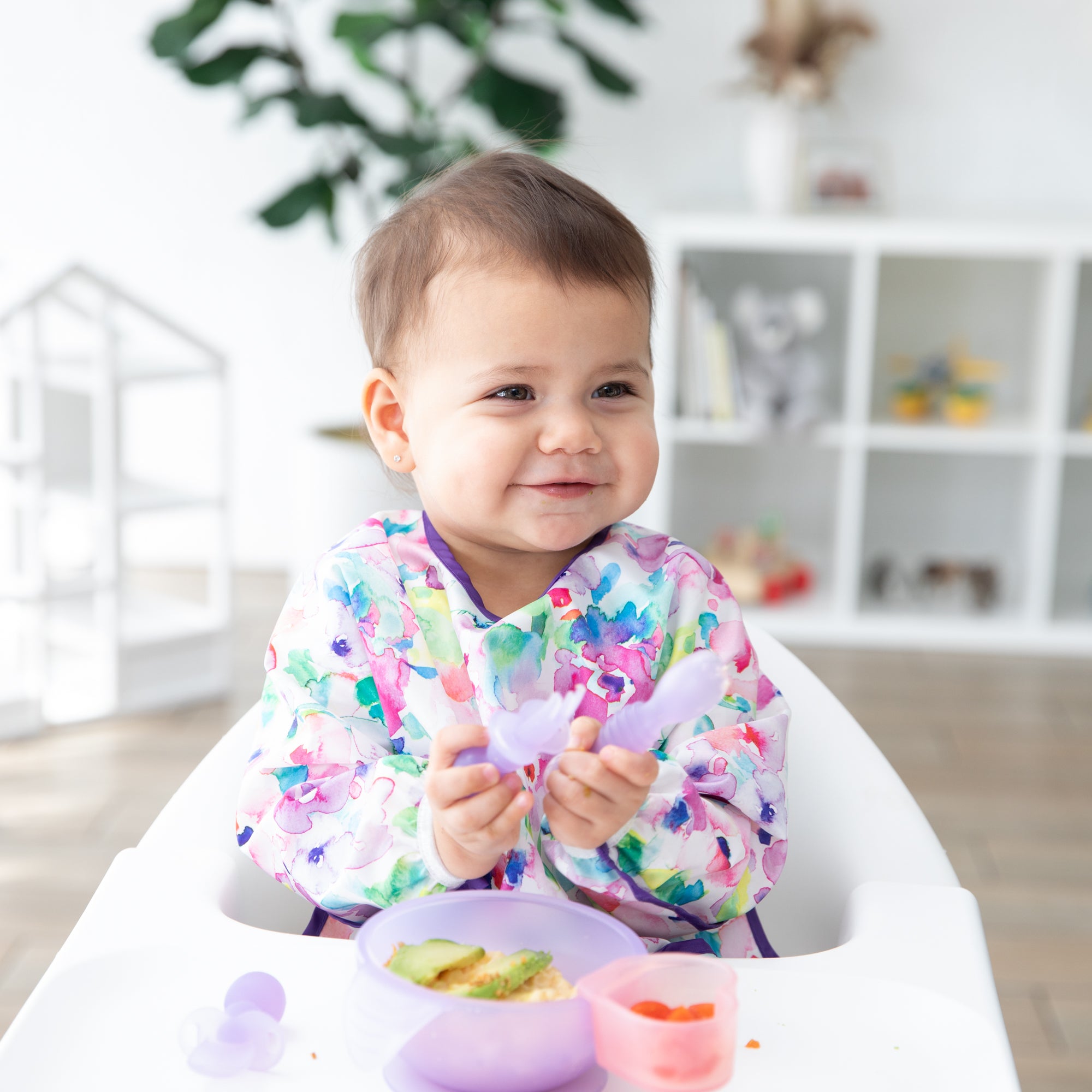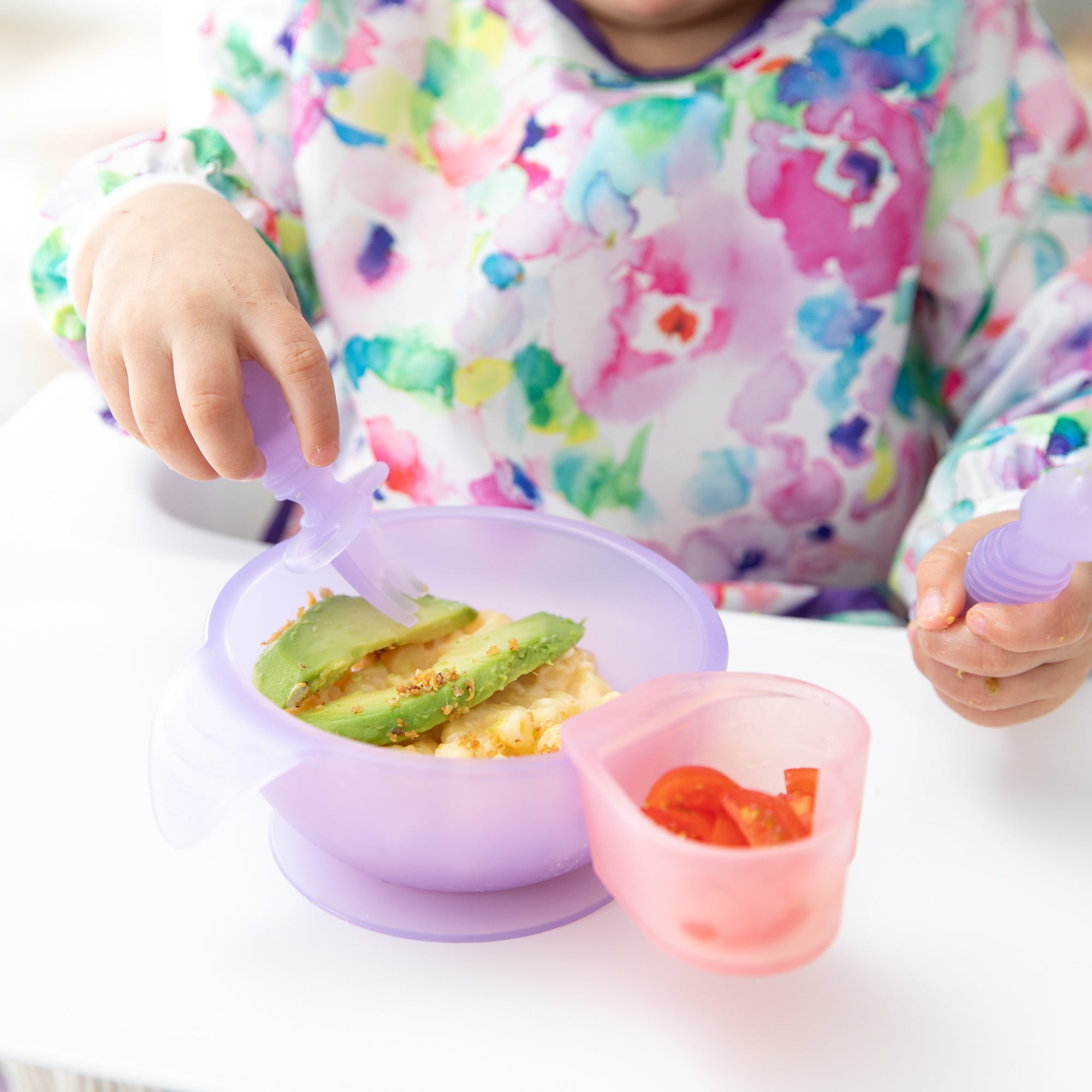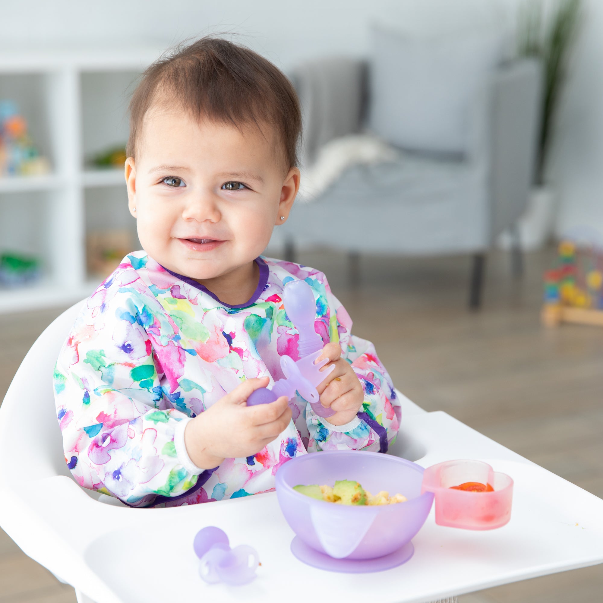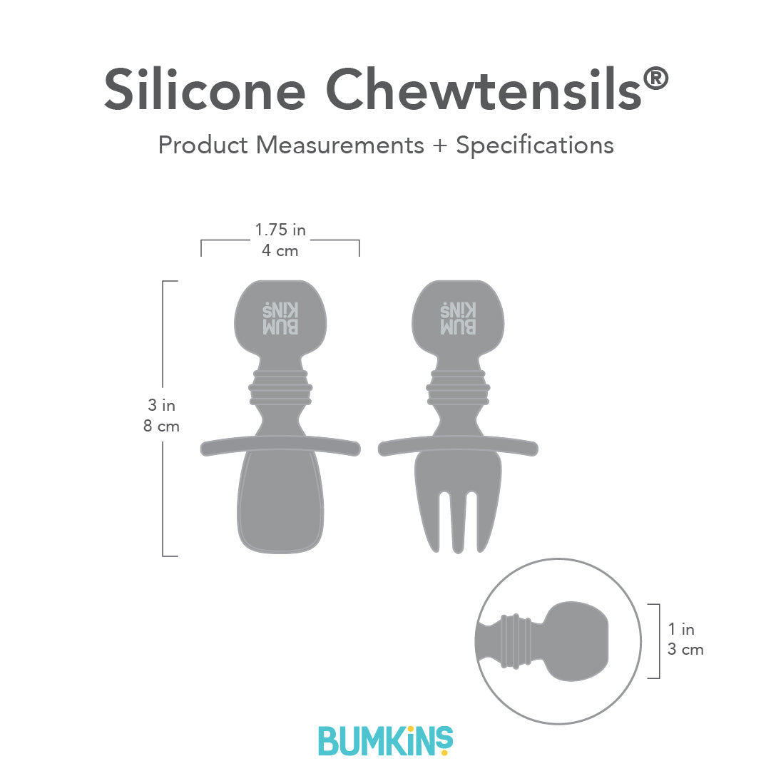 Chewtensils are intended for babies before they have a firm grasp on self-feeding (best for dipping and scooping, not yet spearing solid foods). Do not leave child unattended with Chewtensils. Discard if damaged or torn.