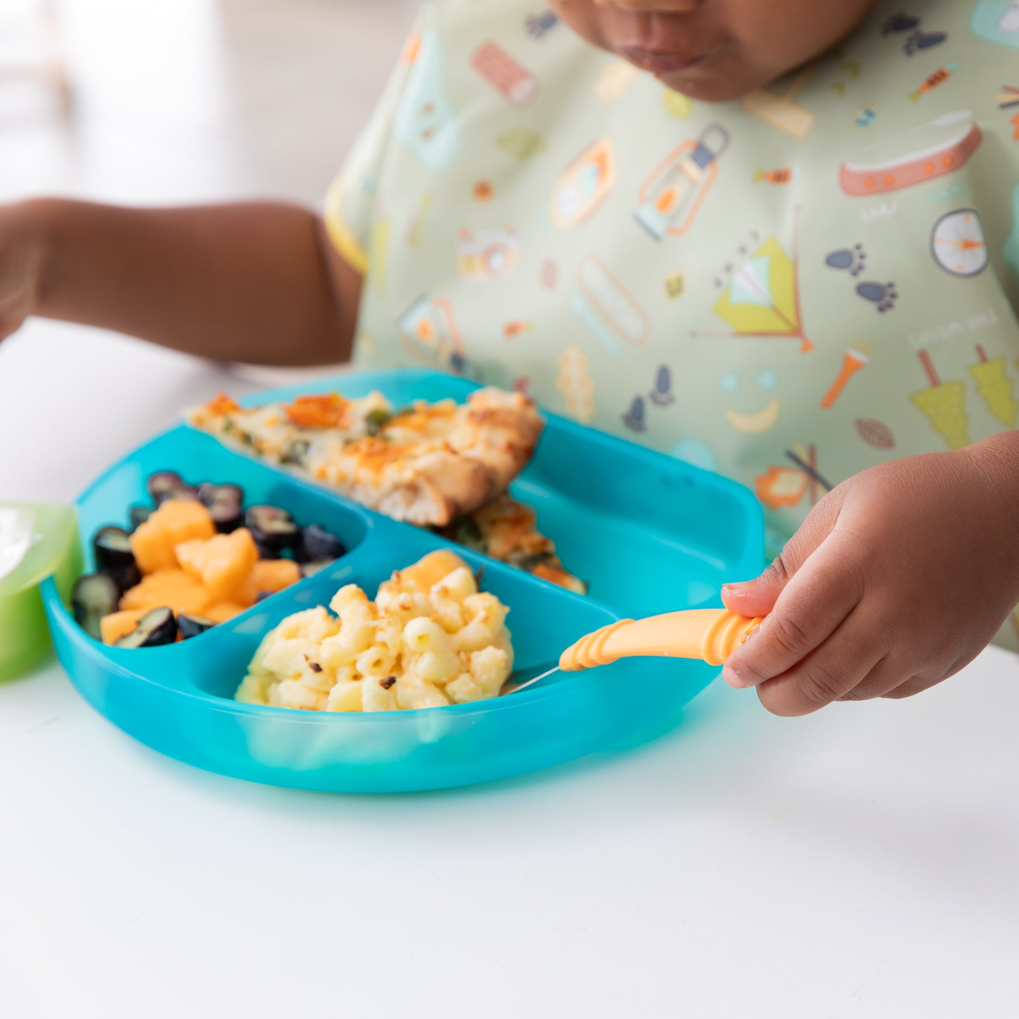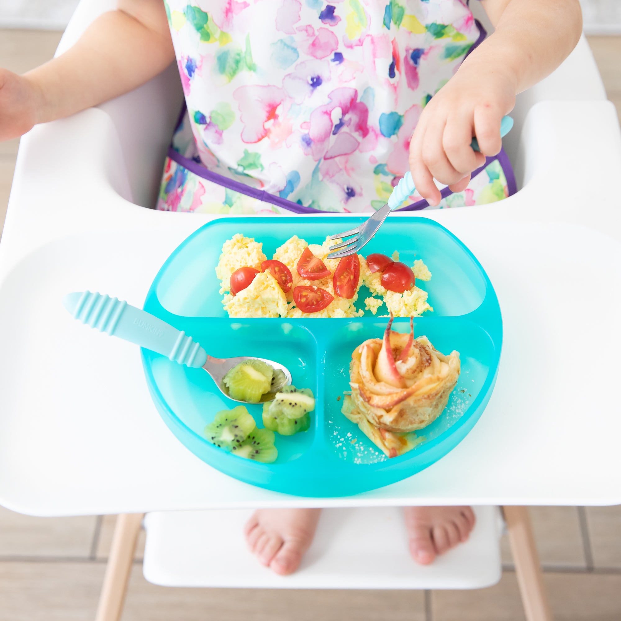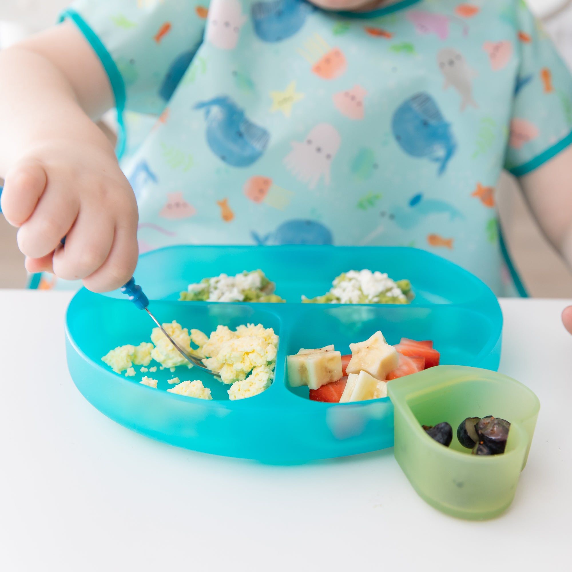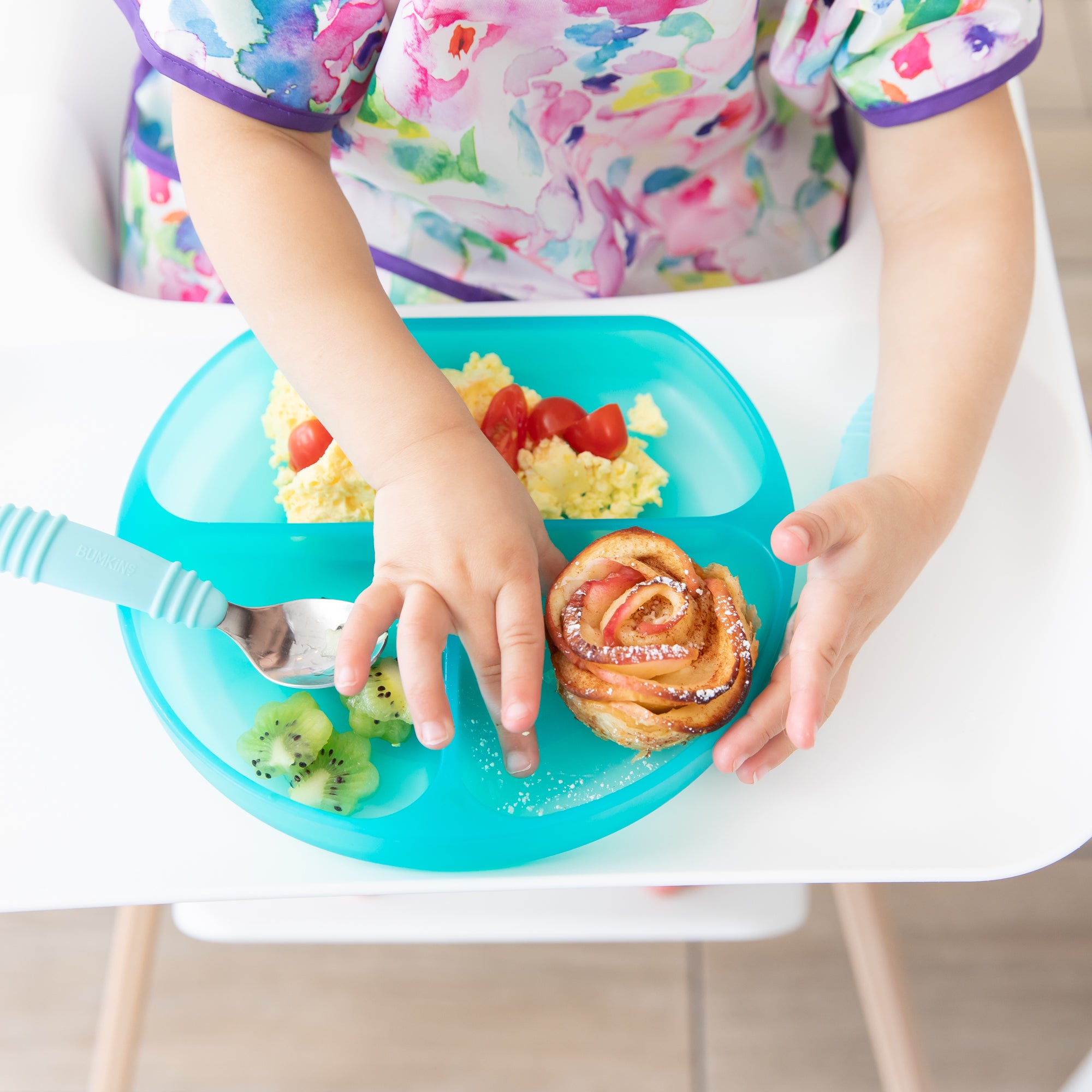 Move over jelly beans, there's a new Jelly in town! Bumkins Blue Jelly Silicone Grip Dish is perfect for little ones learning to self-feed. The divided plate is sized right for baby and toddler portions and it fits and sticks to most highchair trays and tables. The dish is made with 100% food-safe, premium LFGB silicone that’s durable and resists stains and bacteria. Silicone can withstand high to low temperatures (from 400℉ down to -40℉), allowing the dish to go from the oven or microwave into the freezer for a quick cool down.