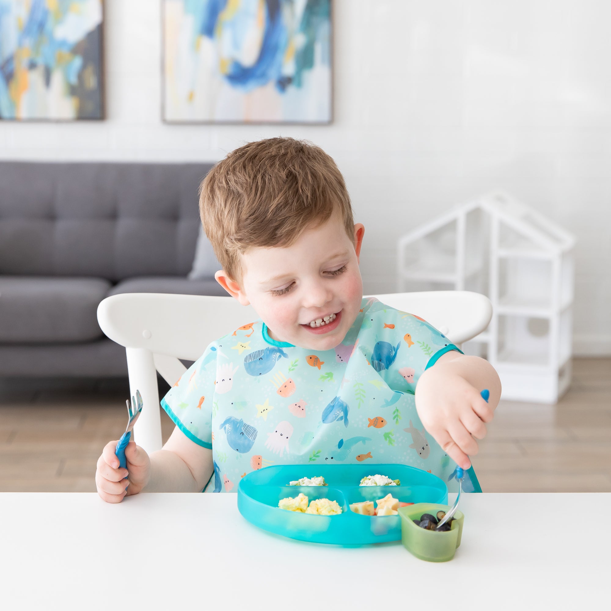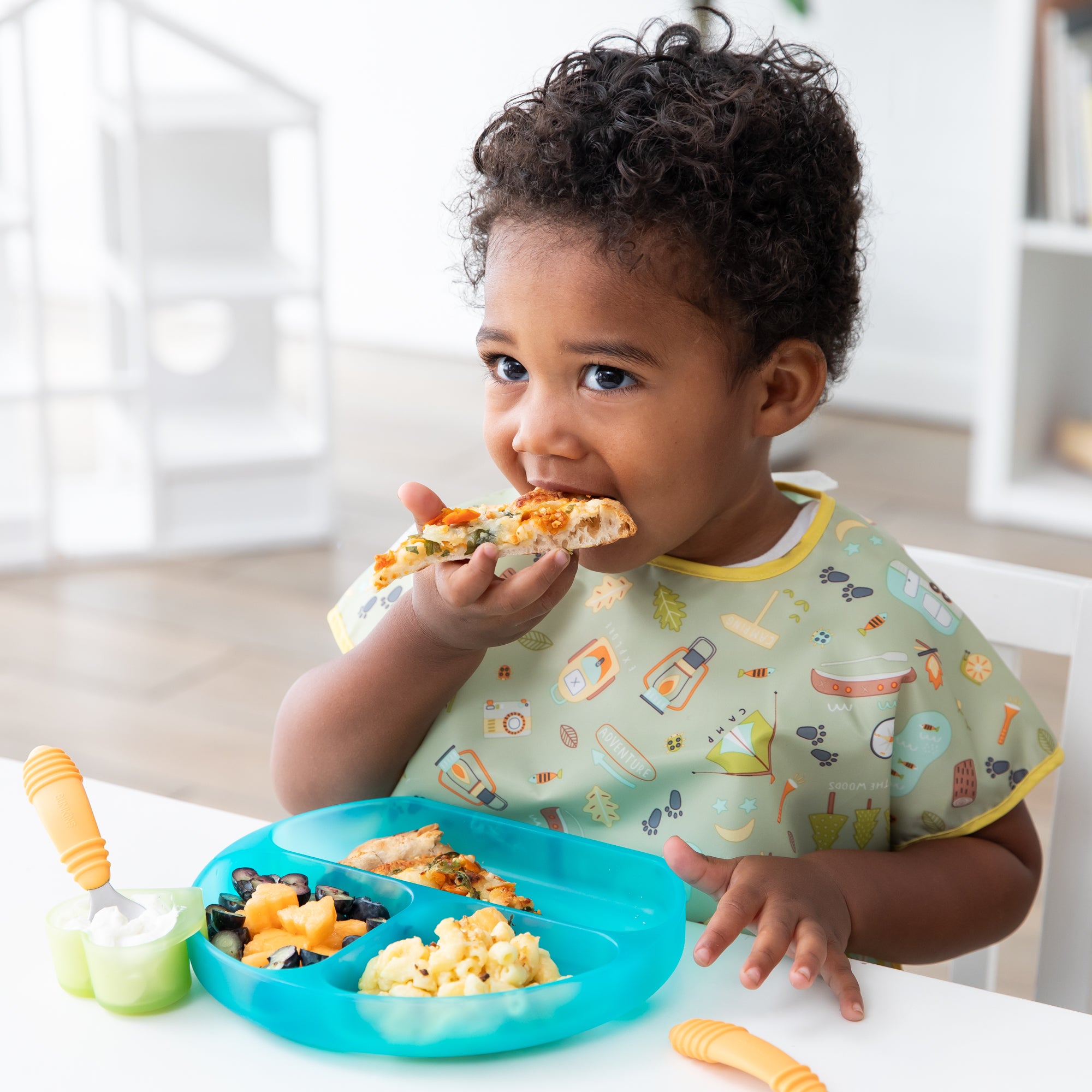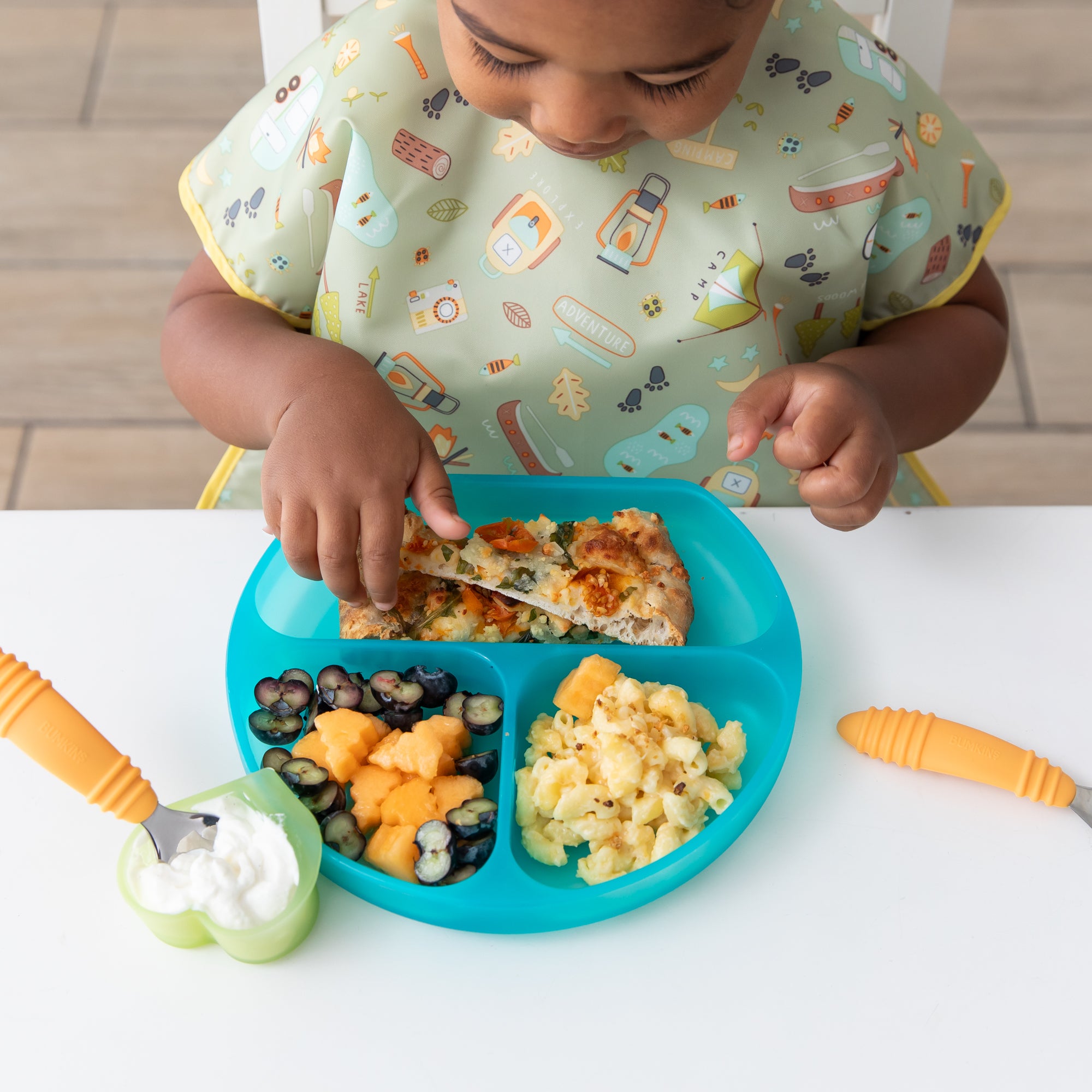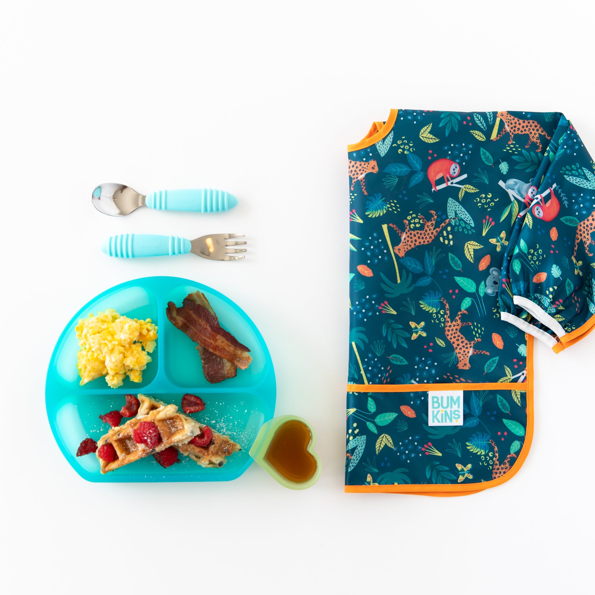 Move over jelly beans, there's a new Jelly in town! Bumkins Blue Jelly Silicone Grip Dish is perfect for little ones learning to self-feed. The divided plate is sized right for baby and toddler portions and it fits and sticks to most highchair trays and tables. The dish is made with 100% food-safe, premium LFGB silicone that’s durable and resists stains and bacteria. Silicone can withstand high to low temperatures (from 400℉ down to -40℉), allowing the dish to go from the oven or microwave into the freezer for a quick cool down.